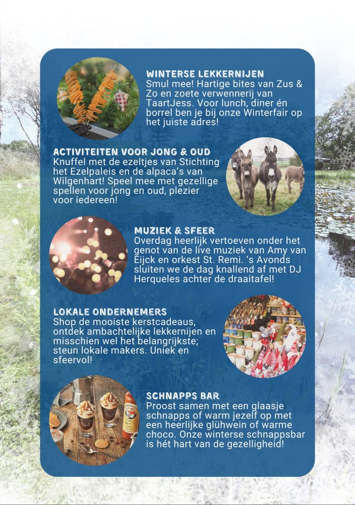 - Geniet van winterse lekkernijen zowel voor lunch diner als borrel zit je op de winterfair goed.