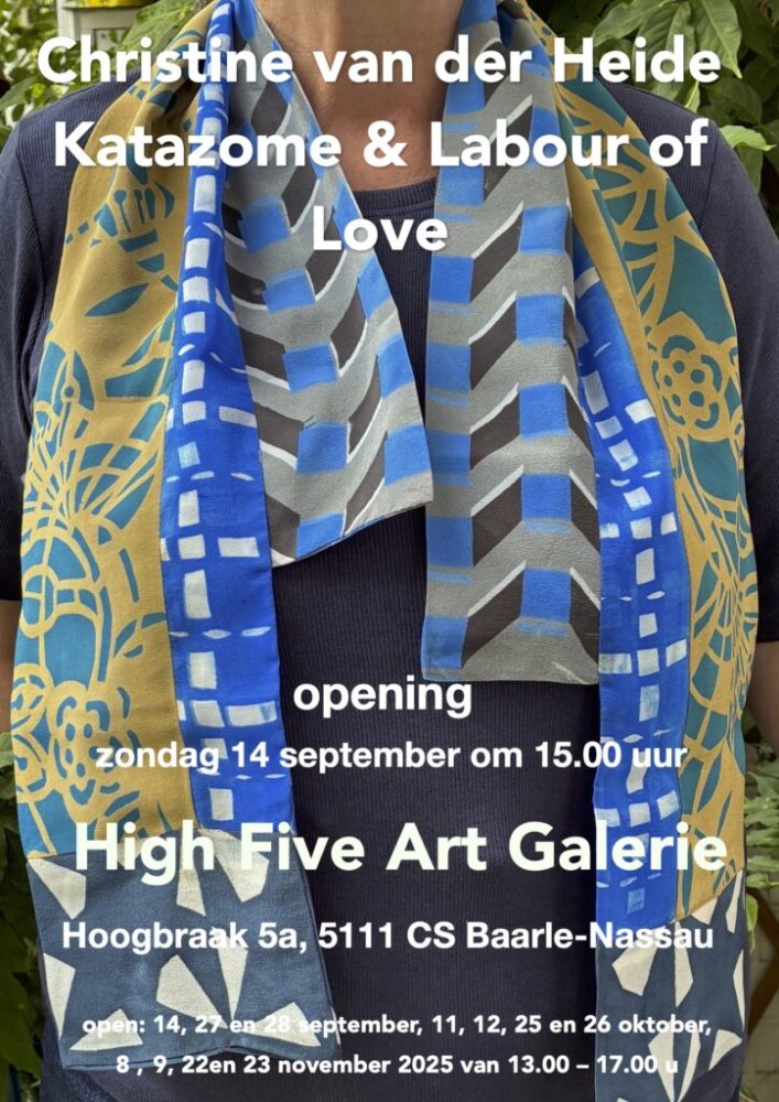 Openingsuren: zaterdag en zondag van 13-17 uur 14, 27 en 28 september 11, 12, 25 en 26 oktober 8,9, 22 en 23 november verder op afspraak: www.highfiveart.nl