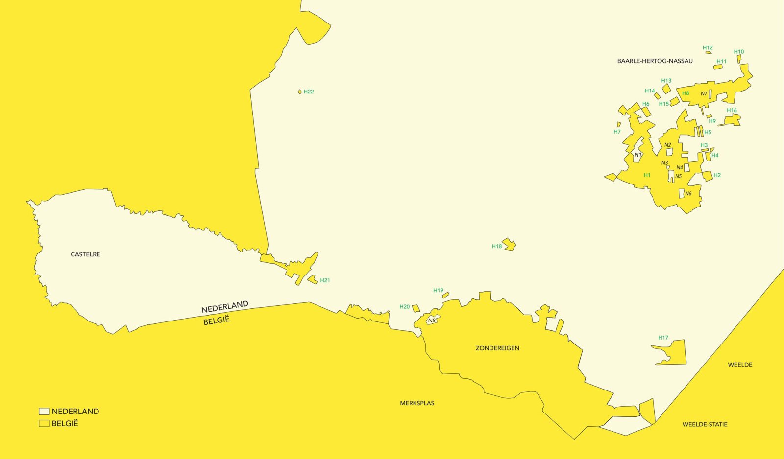 H19 is een quasi-rechthoekige enclave, bestaande uit een deel van een weide en een deel van een bosje met een vijver. De enclave is slechts via een afgesloten Nederlandse privéweg bereikbaar. Zij wordt door een beemd van de Belgisch-Nederlandse hoofdgrens gescheiden.