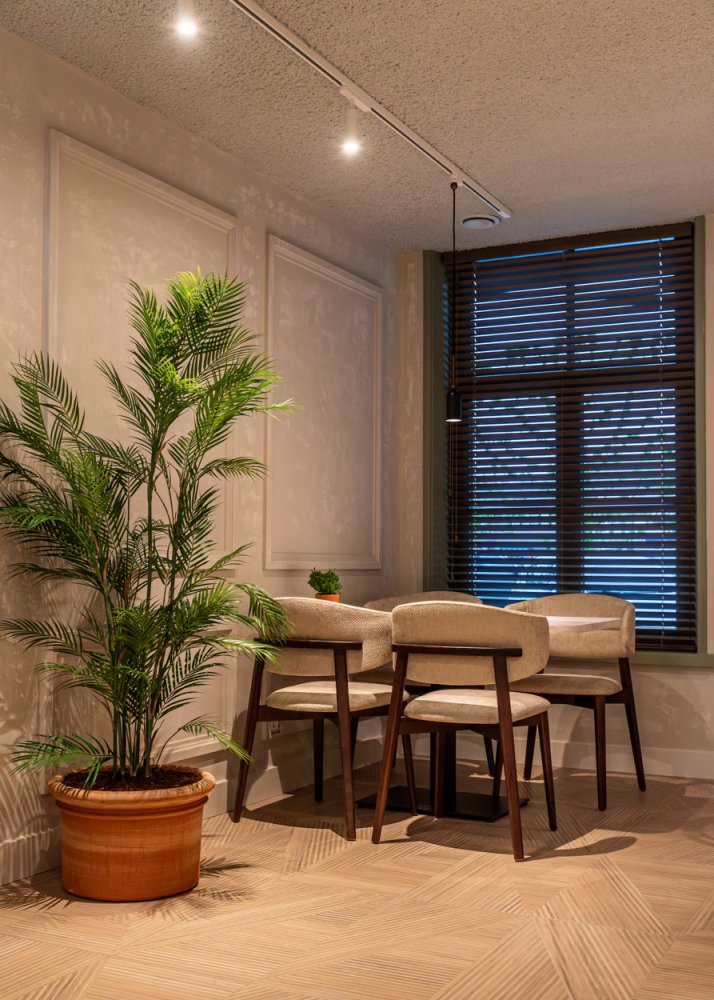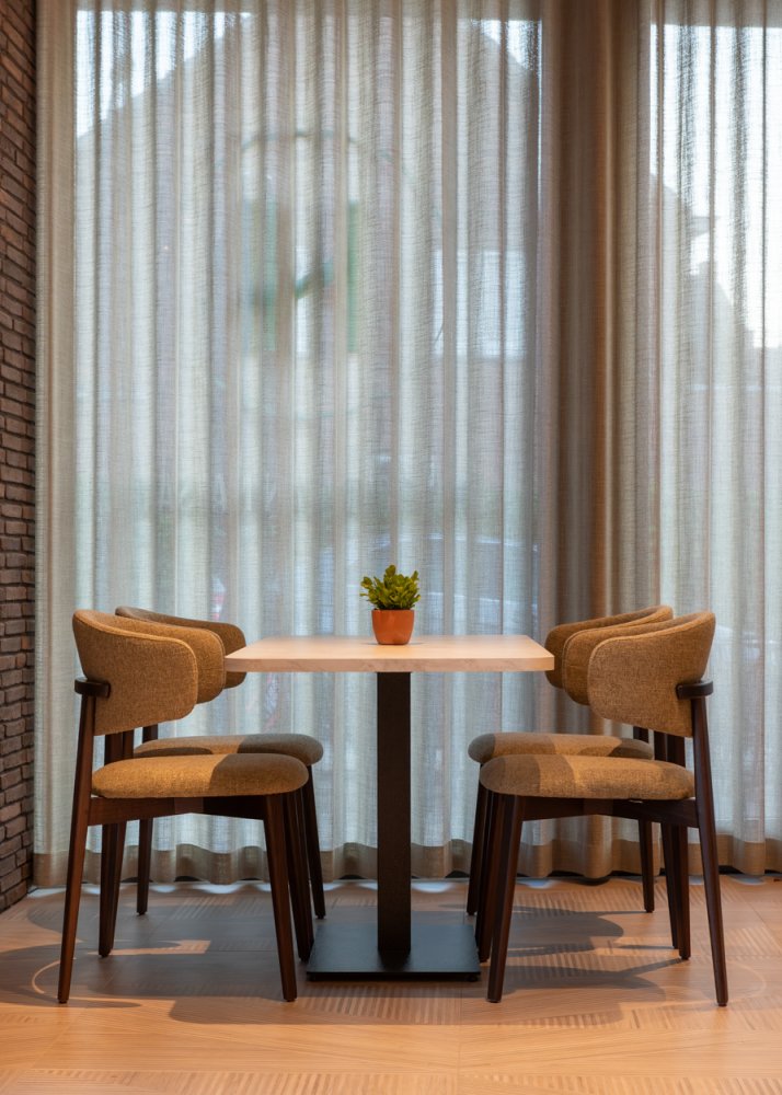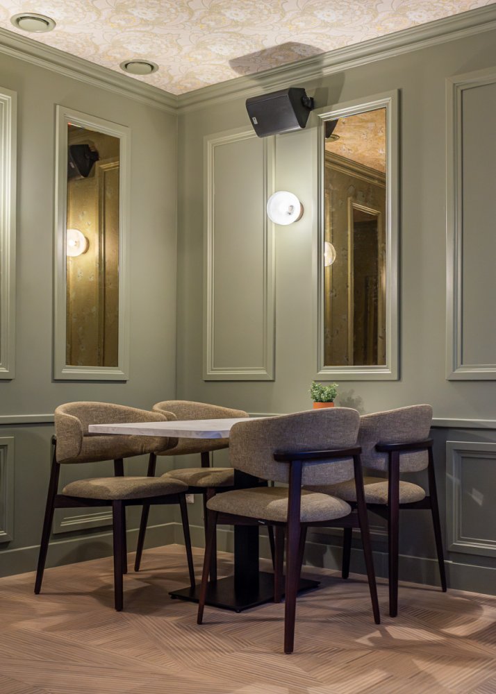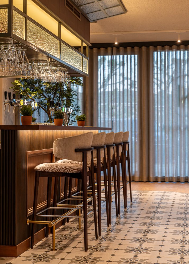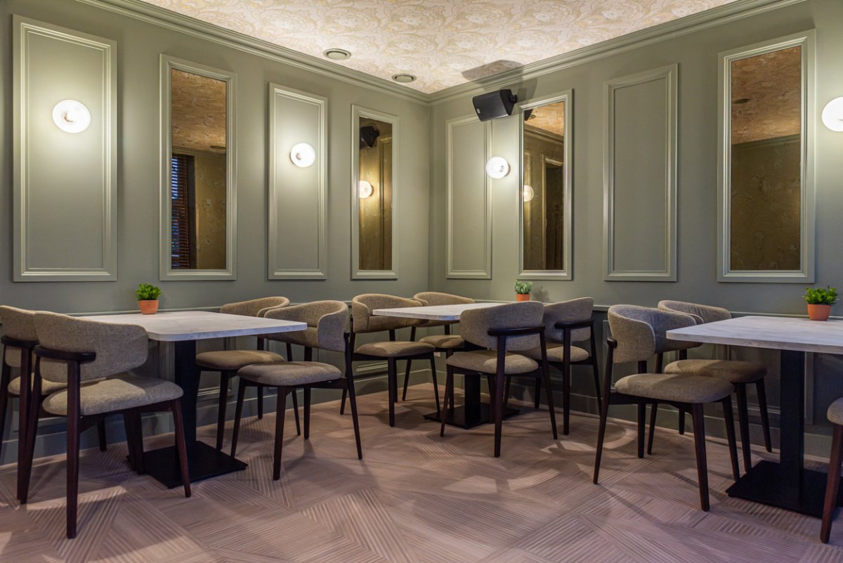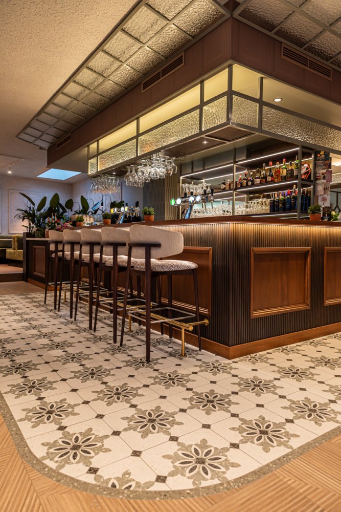 De nieuwe locatie is prachtig: het pand dat ooit dienstdeed als oude ambstwoning – een gemeentelijk monument – onderging een ingrijpende verbouwing. Samen met interieurontwerper Art2Go werd het pand omgetoverd tot een grandcafé met 275 m², zo’n 80 zitplaatsen binnen, 90 terrasplekken en zelfs een ruimte voor private-dining . Materialen als donker hout, marmer, warme stoffen en een mix van lage en hoge tafels geven het geheel een warm, modern én klassiek karakter. De sfeer ademt ‘stadse allure’ zonder dat het afstandelijk wordt – het blijft laagdrempelig wat betreft sfeer, beleving en prijs.